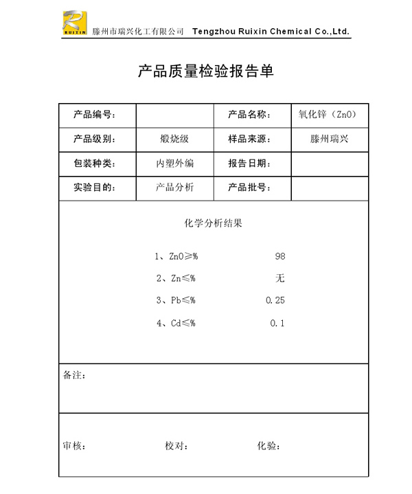 瑞興化工有限公司是生產氧化鋅的重點企業(yè),于2008年通過ISO9001:2008質量管理體系認證。“瑞興”牌氧化鋅在國內擁有較大穩(wěn)定的市場,并遠銷東南亞、中東、中南美等國家和地區(qū),在國內外享有較高聲譽。